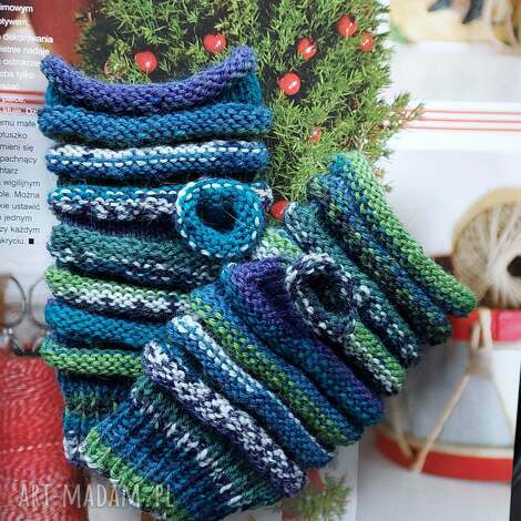 Artystyczne mitenki melanżowe w tonacji niebieskiej: Mitenki wykonane na drutach bezszwowo z kciukiem, Wysoka jakośc włóczki 75 %wełnysprzedane