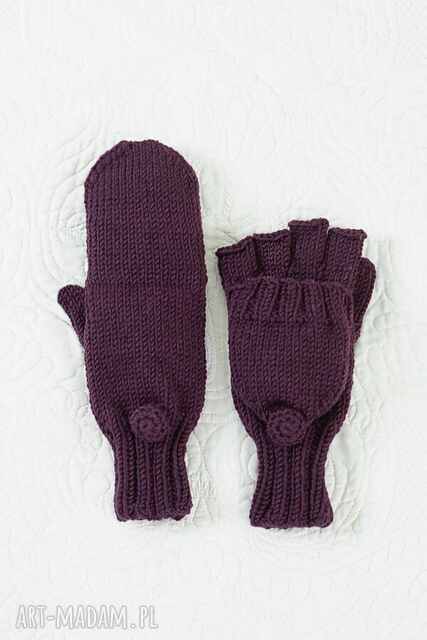 handmade rękawiczki flap z klapką wełniane bakłażanowe