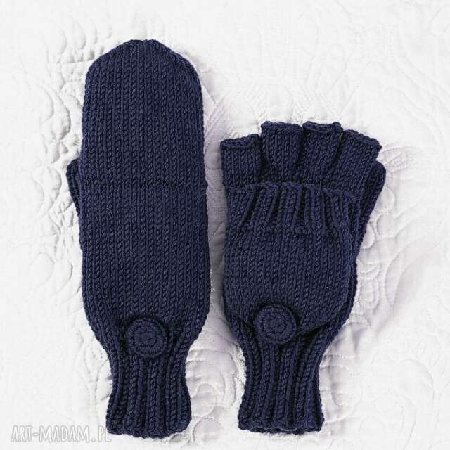handmade granatowe rękawiczki flap z merynosa pomysł na prezent