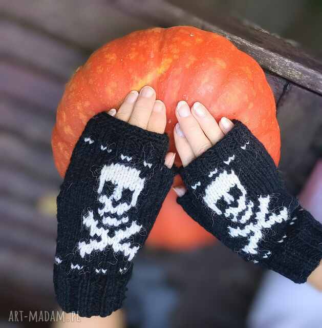 Dzianinowy ocieplacz na nadgarstki/rękawiczki bez palców z czaszkami/Mitenki/"Edgy Skull" /Prezent/