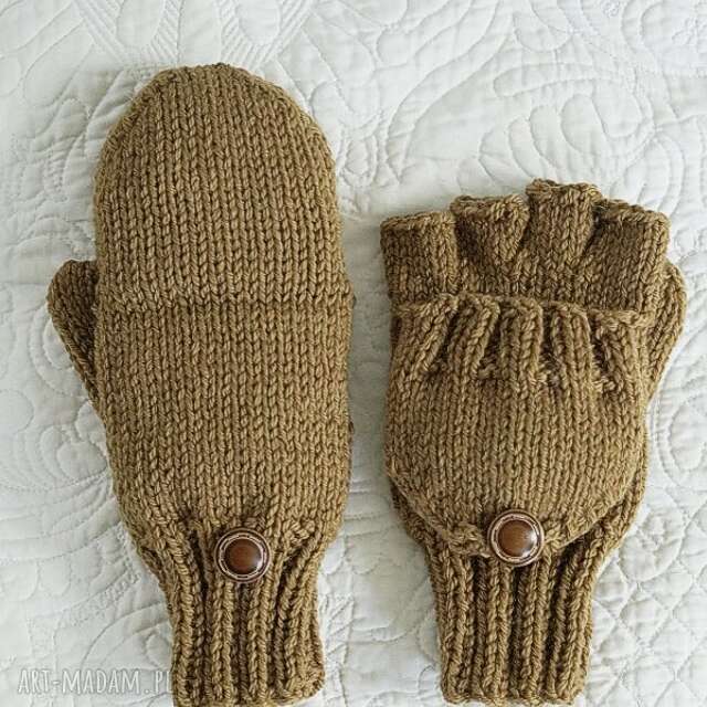 dziergane męskie rękawiczki wełna