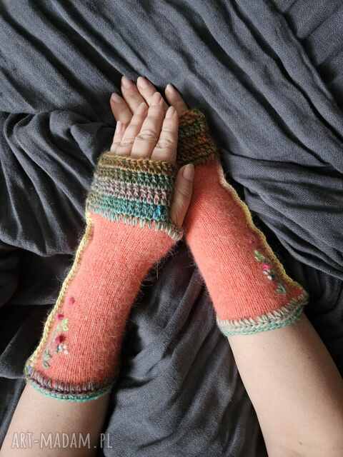 Mitenki w ognistych barwach. Rękawiczki handmade Mitenki z otworem na kciuka,, wykonane ręcznie, z miękkiej włóczki, cieniowane150,00 zł