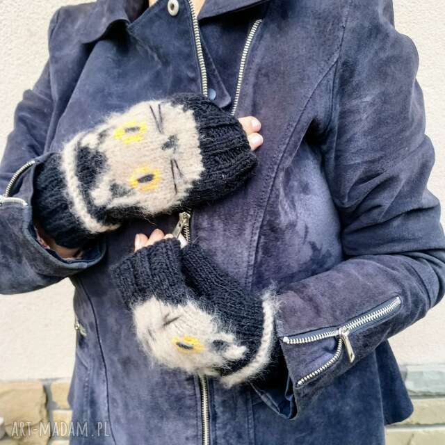 handmade mitenki z serii "kudłaty kotek" / rękawiczki damskie / mitenki /jesień zima